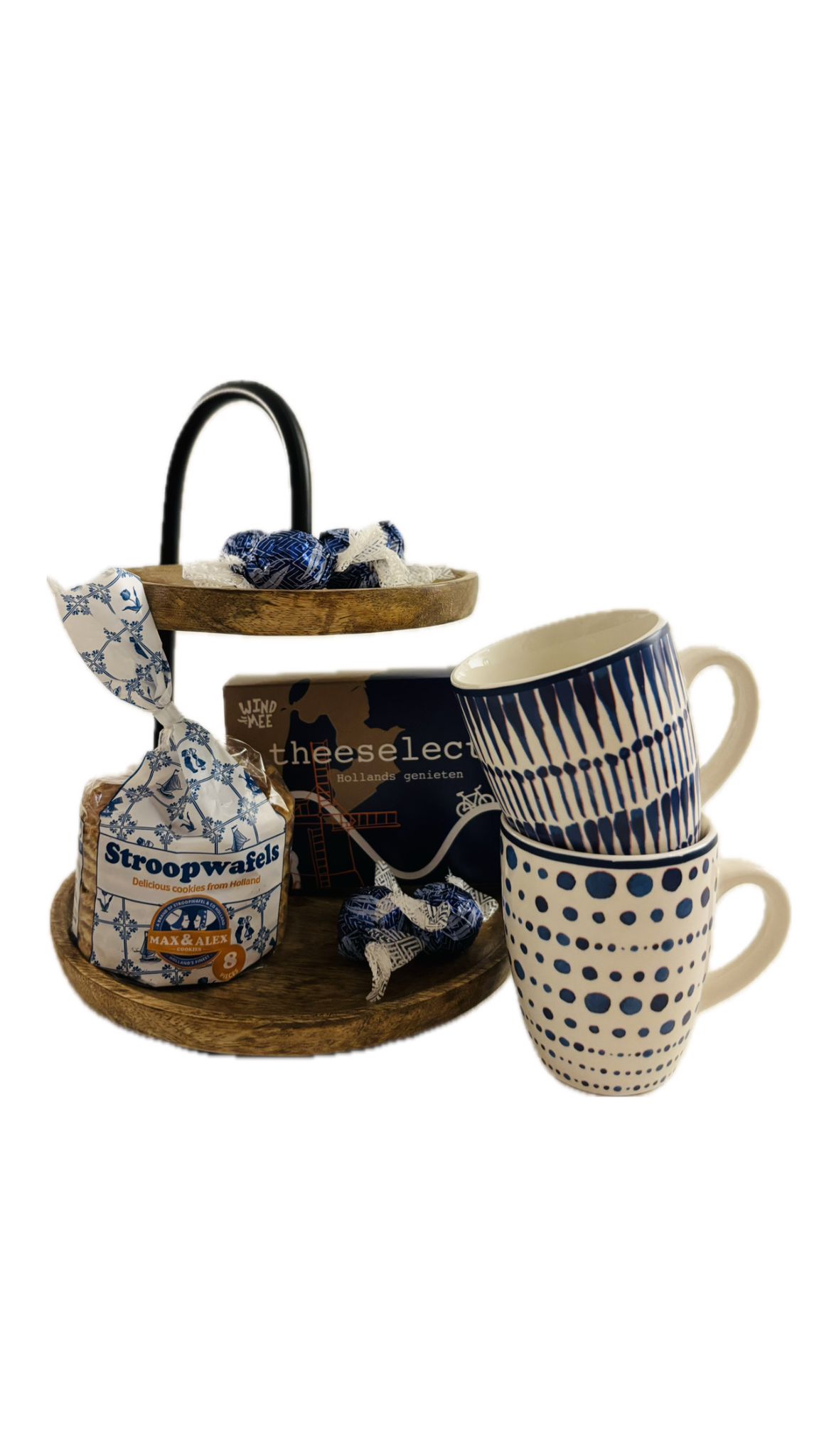 Verras uw personeel, vrijwilligers, teamgenoten of relaties met een charmant en smaakvol geschenk: onze houten mini etagère, feestelijk gevuld met lekkernijen voor een warm theemoment. Dit originele pakket combineert stijl, gezelligheid en bruikbaarheid — perfect voor de feestdagen of als attent gebaar door het jaar heen.