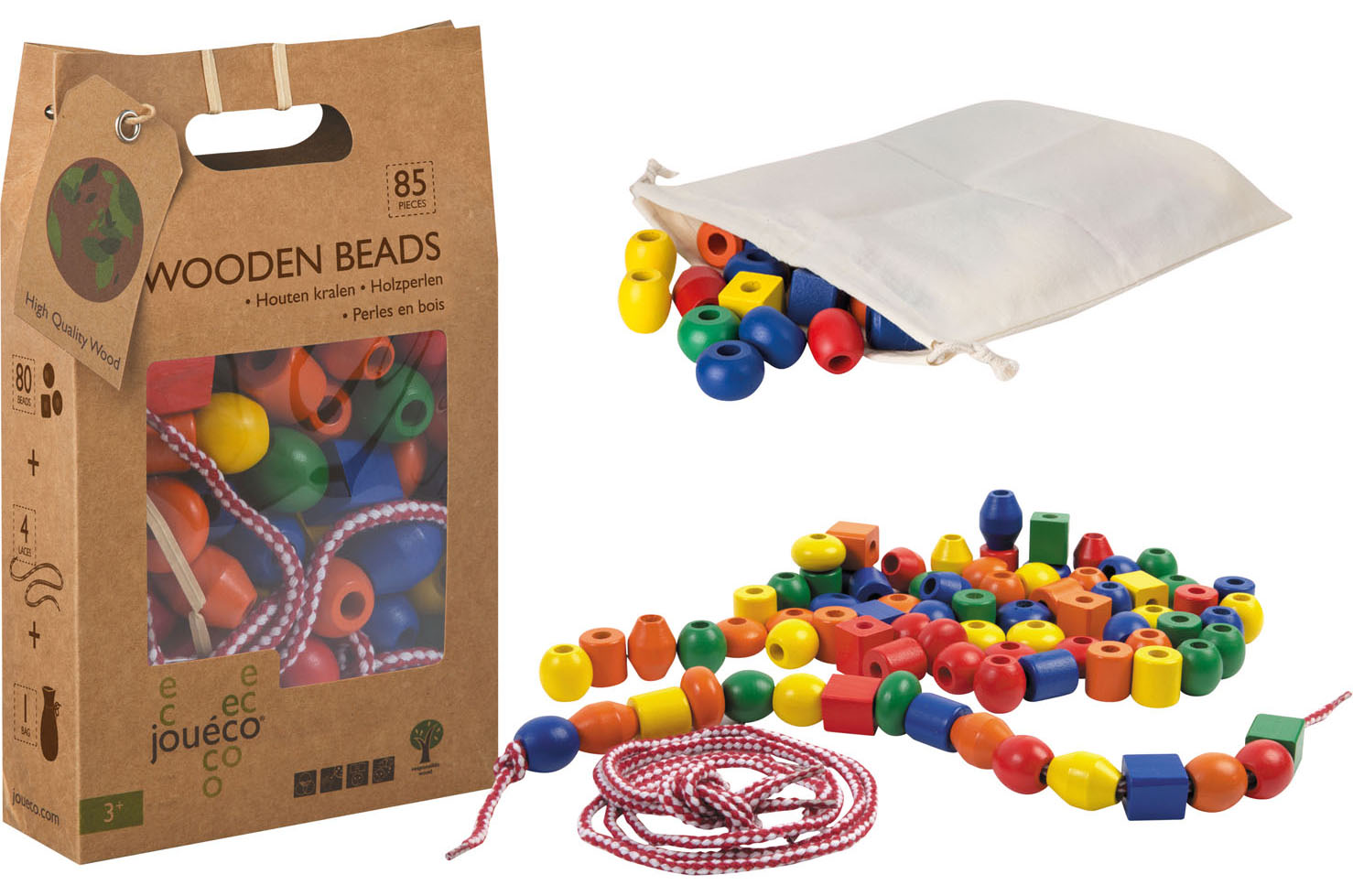 Stimuleer spelenderwijs de fijne motoriek en hand-oogcoördinatie van je kindje met deze kleurrijke Jouéco rijgkralen set. Jouéco staat bekend om zijn hoogwaardige, glad afgewerkte houten speelgoed – veilig, duurzaam en prachtig vormgegeven.