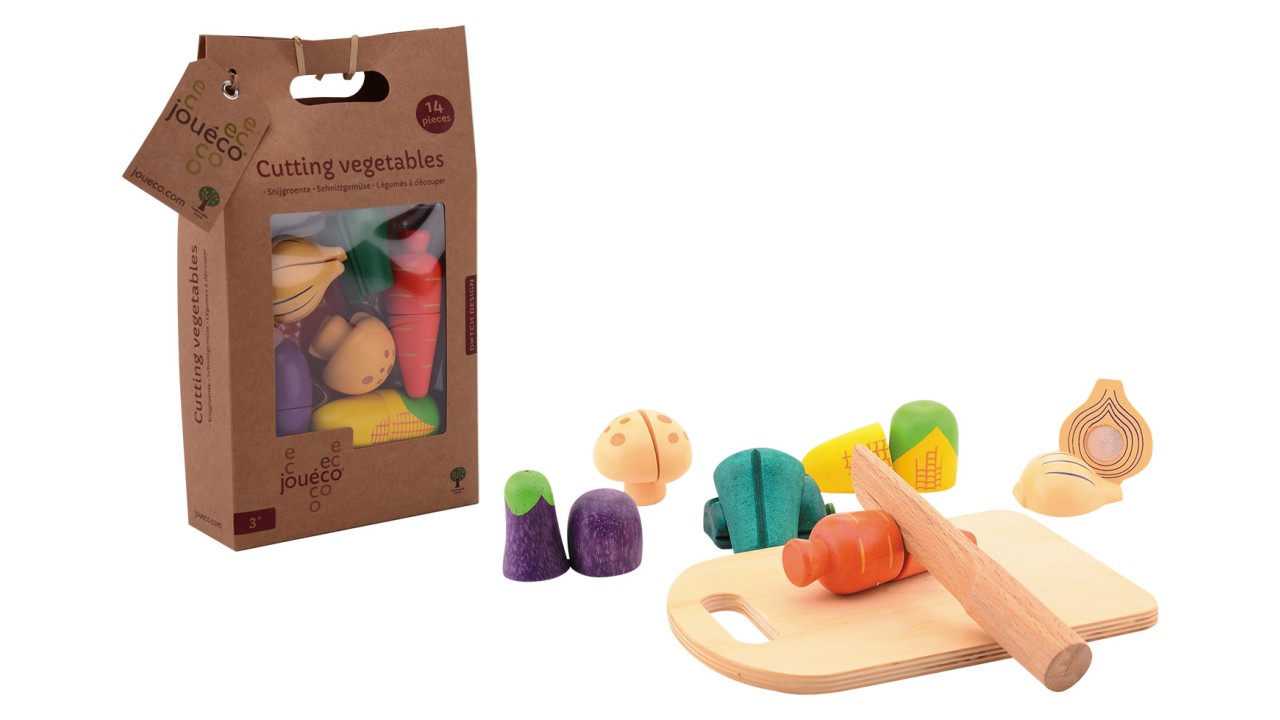 Met de houten snijgroente van Jouéco wordt elk keukenspel een smakelijk avontuur. Deze kleurrijke set bevat verschillende groentes die kinderen kunnen doorsnijden dankzij de klittenbandverbinding – net als in een echte keuken! En het mooiste? De set is compleet met een houten snijplankje en mes, zodat jonge chef-koks meteen aan de slag kunnen.